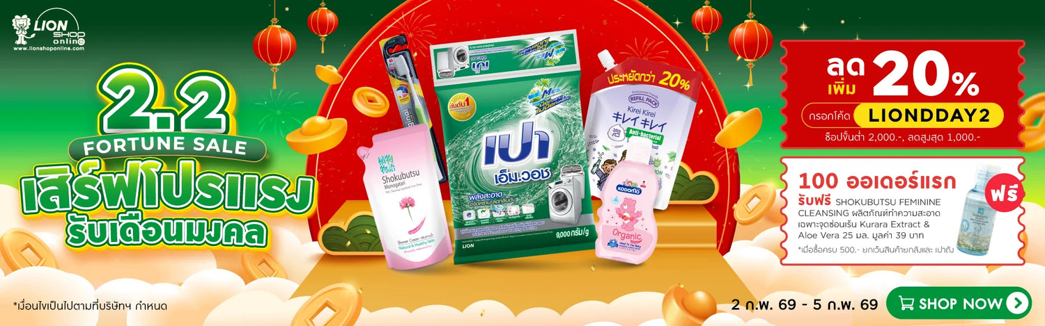 ![[แพ็ก 2 ฟรี 1] KODOMO แป้งเด็ก โคโดโม 350 กรัม [เลือกสูตรด้านใน]](http://lionshoponline.com/cdn/shop/files/NEWPACK_KODOMO_Baby_Powder_350g-05_0.jpg?v=1768985870&width=370)