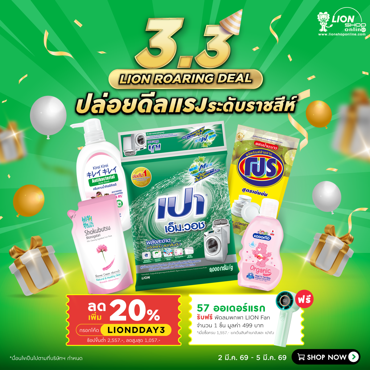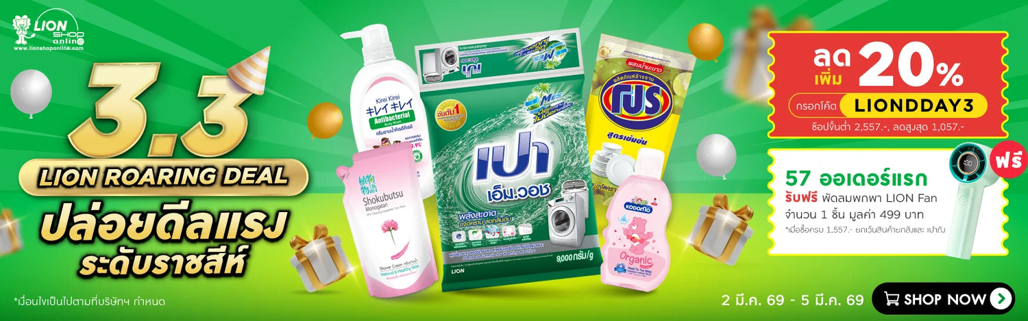 ![[แพ็ก 2 ฟรี 1] KODOMO แป้งเด็ก โคโดโม 350 กรัม [เลือกสูตรด้านใน]](http://lionshoponline.com/cdn/shop/files/NEWPACK_KODOMO_Baby_Powder_350g-05_0.jpg?v=1768985870&width=370)