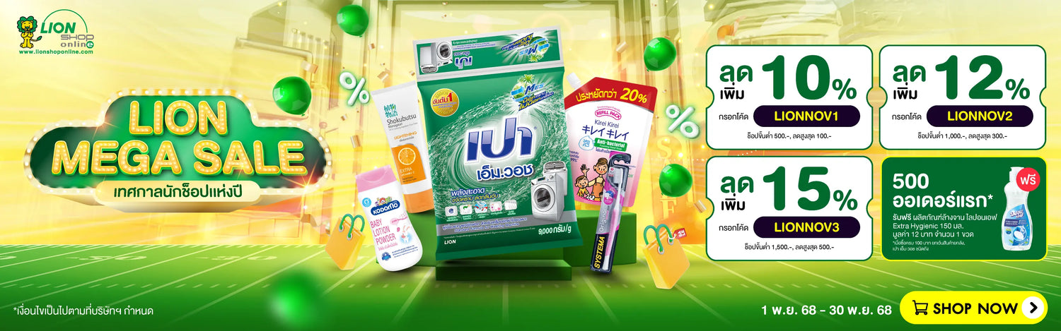 ![[1 ฟรี 1] PAO ผลิตภัณฑ์ ซักผ้า ชนิดน้ำ สูตรเข้มข้น เปา วินวอช ลิควิด ชนิดถุงเติม 650-700 มล. [เลือกสูตรด้านใน]](http://lionshoponline.com/cdn/shop/files/PAO_Win_Wash_LiQuid_LiQuid_ce03f8bb-1ade-4178-b962-e5b3d4345fc6.png?v=1746501958&width=370)