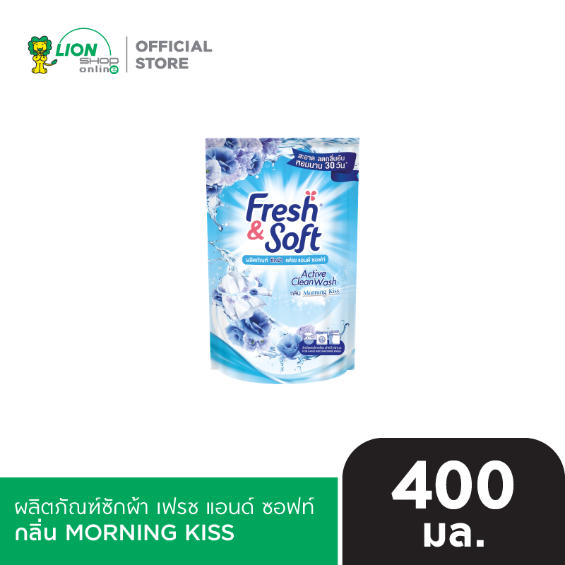 Fresh & Soft น้ำยาซักผ้า เฟรช แอนด์ ซอฟท์ ชนิดเติม 400 มล. [เลือกสูตรด้านใน] 3 ตัวเลือก Morning Kiss (สีฟ้า) Lovely Kiss (สีชมพู) Sparkling Kiss (สีแดง)