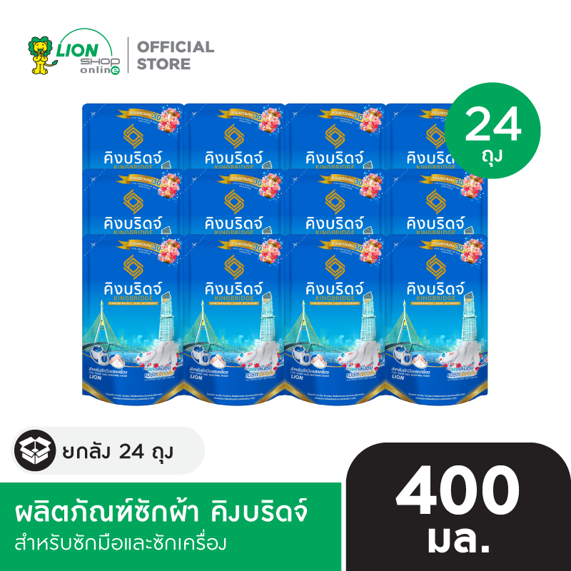 [ยกลัง 24 ถุง] King Bridge น้ำยาซักผ้า คิงบริดจ์ สำหรับซักมือและซักเครื่อง ขนาด 400 มล.