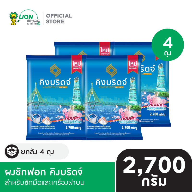 [ยกลัง] King Bridge ผงซักฟอก คิงบริดจ์ สำหรับซักมือและเครื่องฝาบน [เลือกขนาดด้านใน] มีให้เลือก 3 ขนาด 250 กรัม 36 ถุง 750 กรัม 12 ถุง 2700 กรัม 4 ถุง