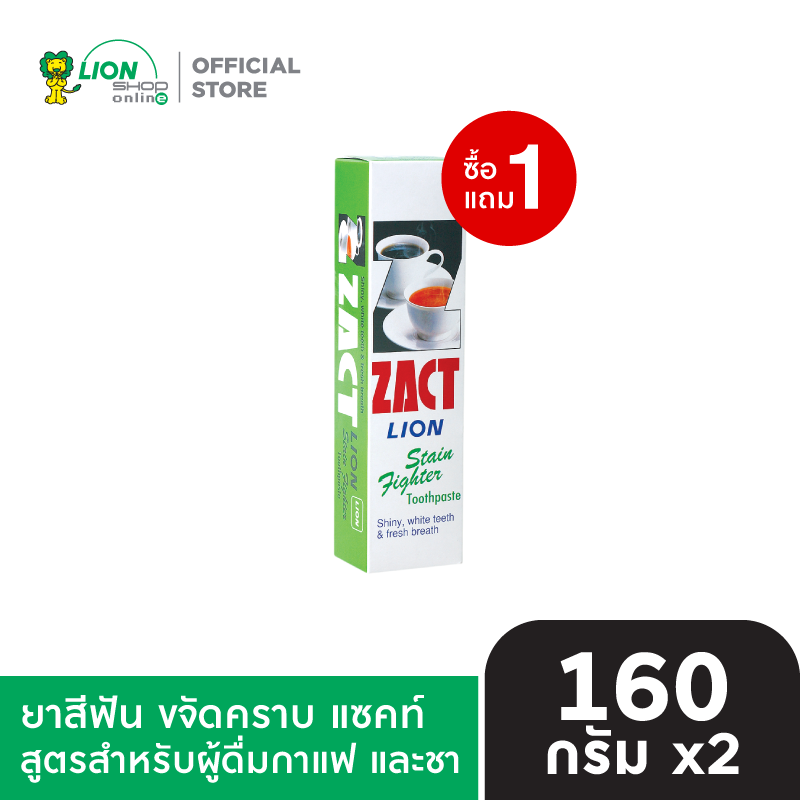 [1 ฟรี 1] ZACT ยาสีฟันขจัดคราบ แซคท์ 160 กรัม [เลือกสูตรด้านใน] 2 ตัวเลือก สูตรสำหรับผู้สูบบุหรี่ (กล่องสีแดง) สูตรสำหรับผู้ดื่มกาแฟ และชา (กล่องสีเขียว)