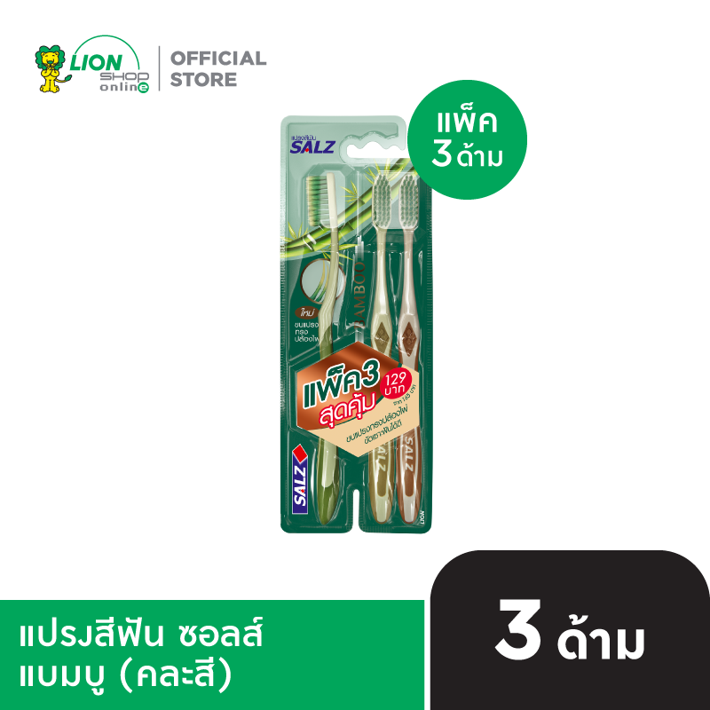 [แพ็ก3] Salz Bamboo แปรงสีฟัน ซอลส์ แบมบู (คละสี)