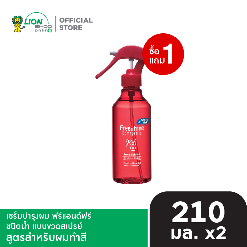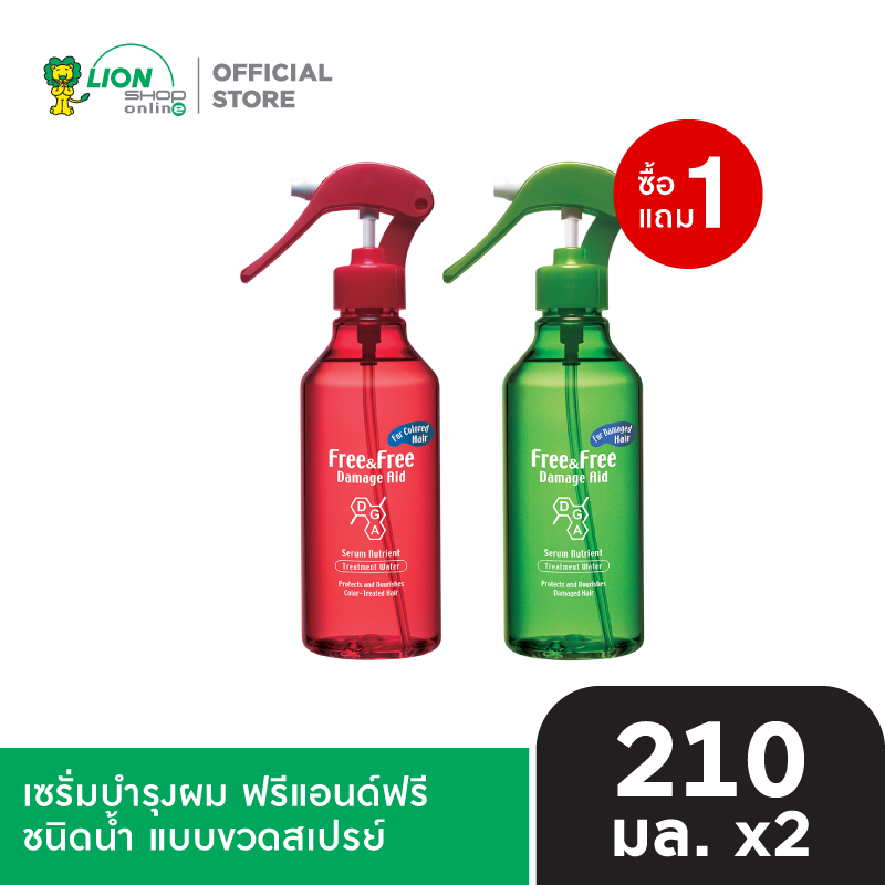 [1 ฟรี 1] Free & Free เซรั่มบำรุงผม ฟรีแอนด์ฟรี ชนิดน้ำ แบบขวดสเปรย์ 210 มล. [เลือกสูตรด้านใน] มี 2 สูตรให้เลือก สำหรับ ผมเสียทั่วไป (สีเขียว) สำหรับผมทำสี (สีแดง)