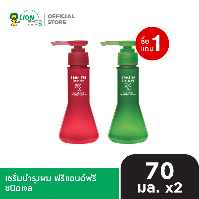 [1 ฟรี 1] Free & Free เซรั่มบำรุงผม ฟรีแอนด์ฟรี ชนิดเจล 70 มล. [เลือกสูตรด้านใน] 2 ตัวเลือก ผมทำสี (สีแดง) ผมเสียทั่วไป (สีเขียว)