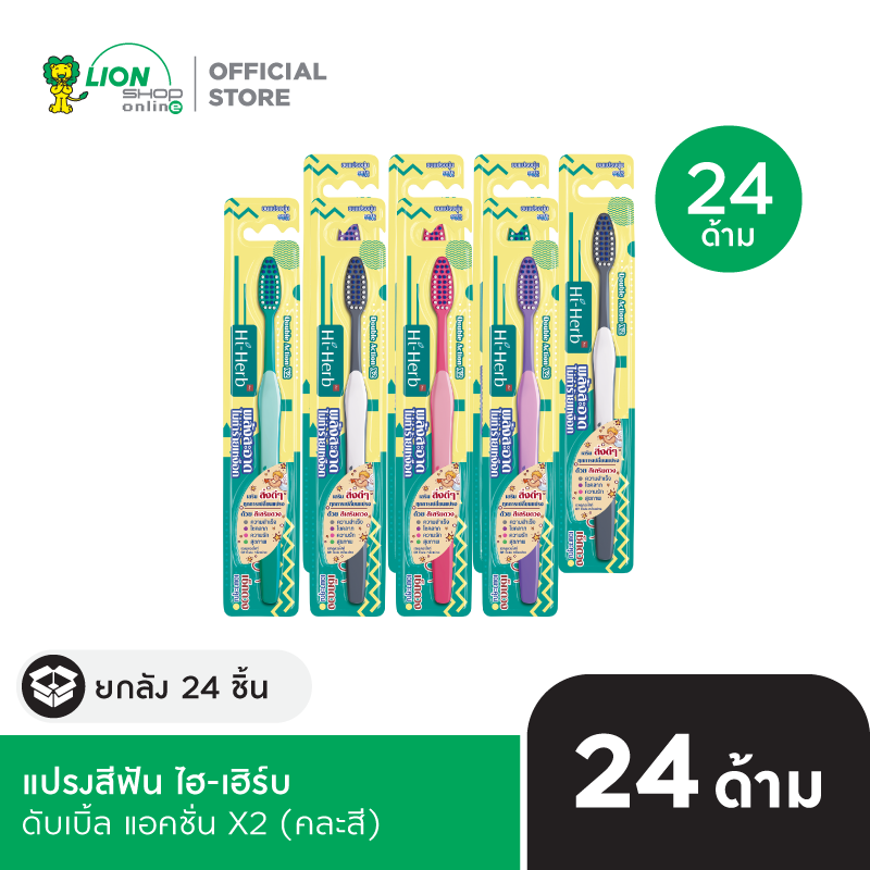 [ยกลัง] HI-HERB แปรงสีฟัน ไฮ-เฮิร์บ Double Action ดับเบิ้ล แอคชั่น X2 (คละสี) 24 ด้าม