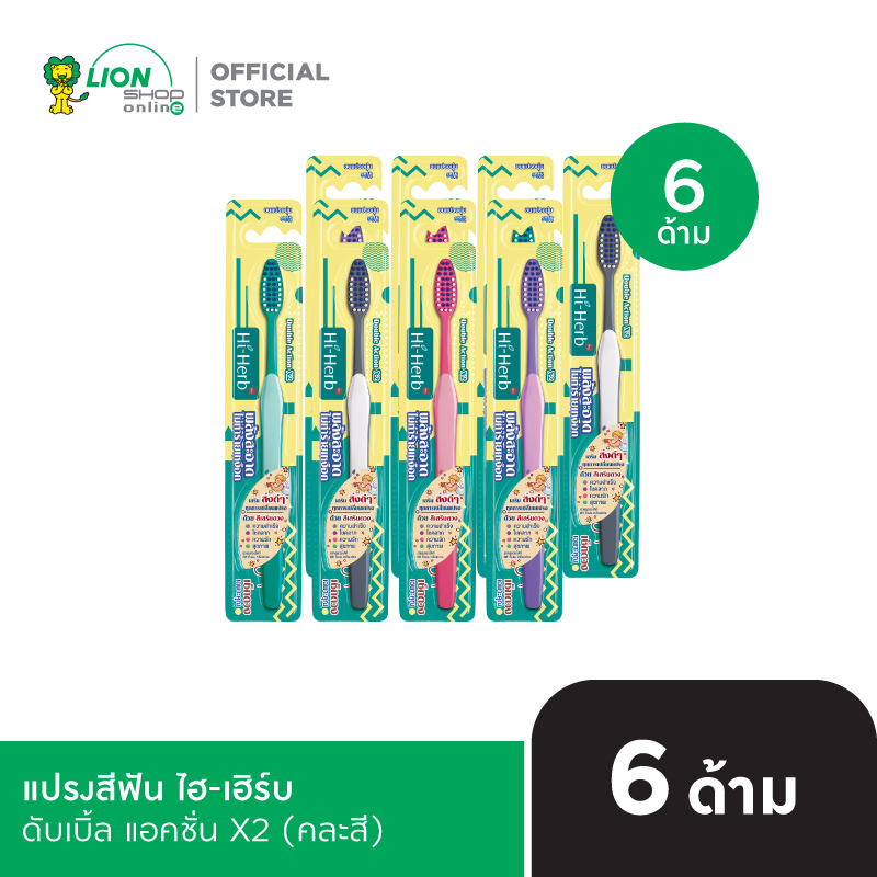 [6 ด้าม] HI-HERB แปรงสีฟัน ไฮ-เฮิร์บ Double Action ดับเบิ้ล แอคชั่น X2 (คละสี)