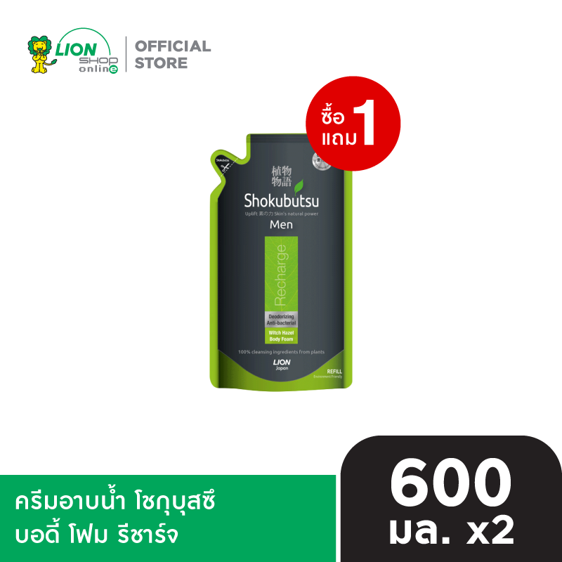 [ 1 แถม 1 ] SHOKUBUTSU บอดี้ โฟม รีชาร์จ 600 มล. (ชนิดถุงเติม)