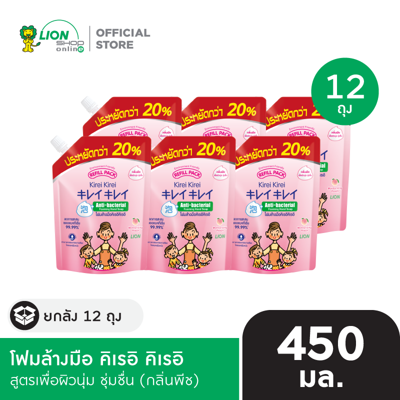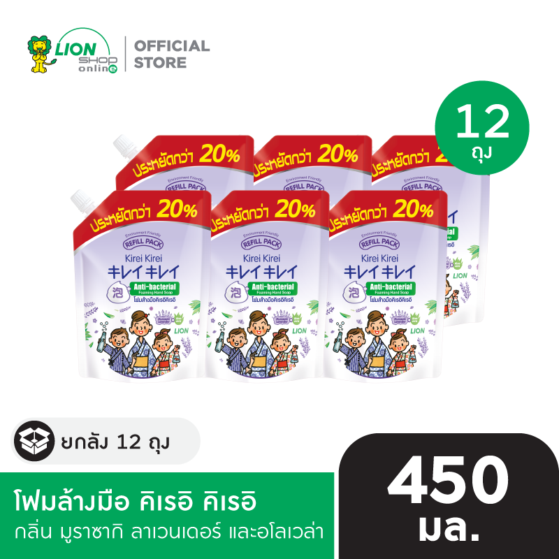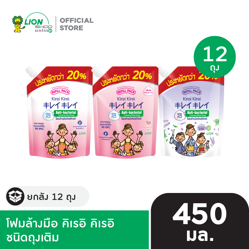 [ยกลัง] Kirei Kirei โฟมล้างมือ คิเรอิ คิเรอิ ชนิดถุงเติม 450 มล. x12 ชิ้น [เลือกสูตรด้านใน]น] มีให้เลือก 3 สูตร ออริจินัล Original เพื่อผิวนุ่ม ชุ่มชื่น (กลิ่นพีช) มูราซากิ ลาเวนเดอร์ และ อโลเวล่า