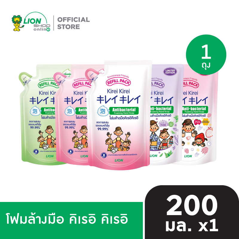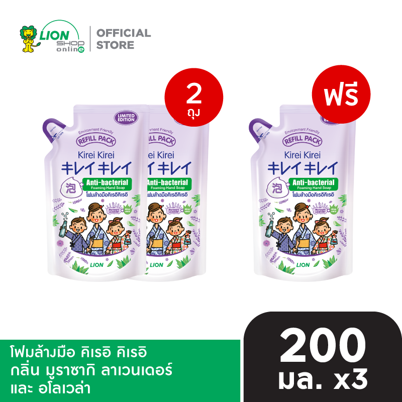 [2 ฟรี 1] KIREI KIREI โฟมล้างมือ คิเรอิ คิเรอิ ถุงเติม 200 มล. [เลือกสูตรด้านใน] มีให้เลือก 5 สูตร ออริจินัล เพื่อผิวนุ่ม ชุ่มชื่น (กลิ่นพีช) หอมสดชื่น กลิ่นองุ่น มูราซากิ ลาเวนเดอร์ และ อโลเวล่า เบอร์รี...