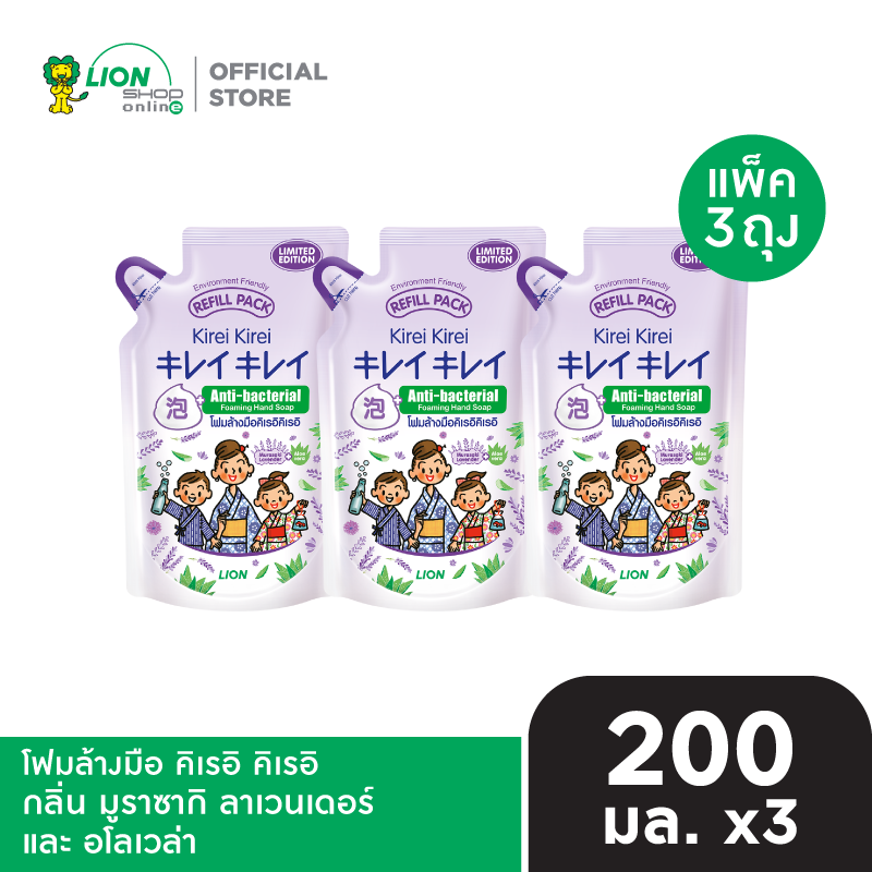 [แพ็ก 3] KIREI KIREI โฟมล้างมือ คิเรอิ คิเรอิ ถุงเติม 200 มล. [เลือกสูตรด้านใน] มีให้เลือก 5 สูตร ออริจินัล เพื่อผิวนุ่ม ชุ่มชื่น (กลิ่นพีช) หอมสดชื่น กลิ่นองุ่น มูราซากิ ลาเวนเดอร์ และ อโลเวล่า เบอร์รี โนะ...