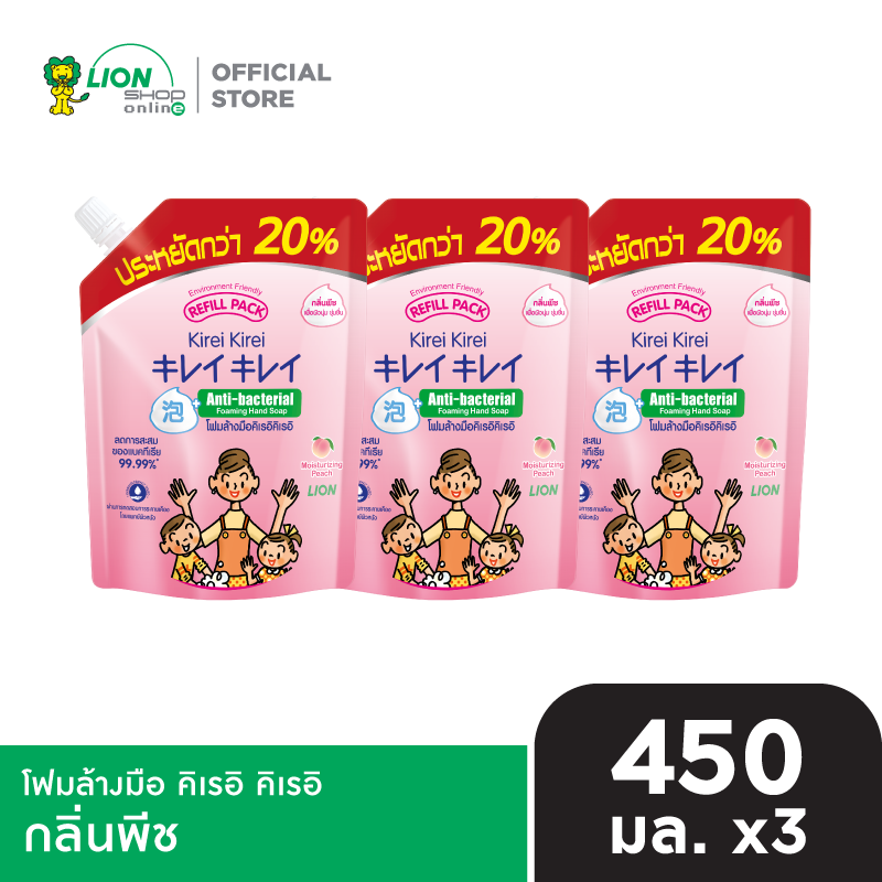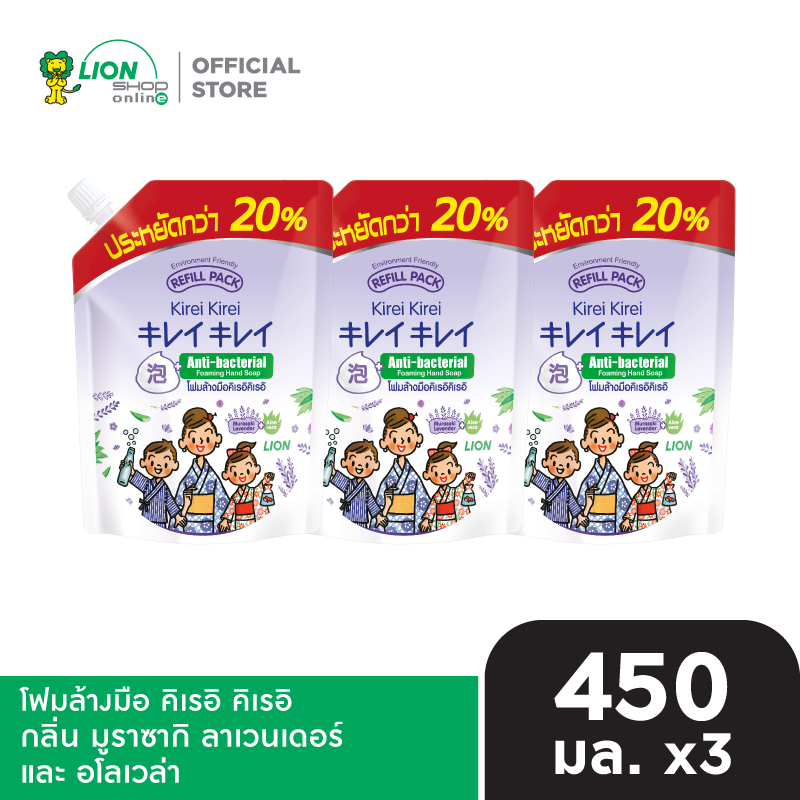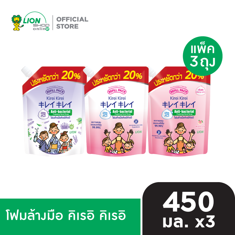 [1 แพ็ก] Kirei Kirei โฟมล้างมือ คิเรอิ คิเรอิ ชนิดถุงเติม 450 มล. 3 ชิ้น [เลือกสูตรด้านใน] มีให้เลือก 3 สูตร ออริจินัล เพื่อผิวนุ่ม ชุ่มชื่น (กลิ่นพีช) มูราซากิ ลาเวนเดอร์ และ อโลเวล่า