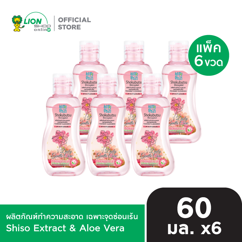 [1 แพ็ก] SHOKUBUTSU FEMININE CLEANSING ผลิตภัณฑ์ทำความสะอาด เฉพาะจุดซ่อนเร้น 60 มล. 6 ขวด