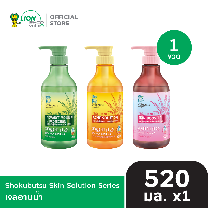 Shokubutsu Skin Solution Series เจลอาบน้ำ 520 มล. [เลือกสูตรด้านใน] 3 ตัวเลือก ลดปัญหาสิว ACNE SOLUTION ผิวนุ่มชุ่มชื่นพิเศษ พร้อมปกป้องผิวจากมลภาวะ ADVANCE MOISTURE & PROTECTION ผิวเนียนใส นุ่มเด้ง กระชับ ฟื้นฟูผิวคืนความอ่อนเยาว์ SKIN BOOSTER