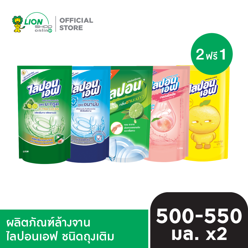 [2 ฟรี 1] Lipon F ผลิตภัณฑ์ล้างจาน ไลปอนเอฟ ชนิดเติม 500-550 ml 3 ถุง [เลือกสูตรด้านใน]