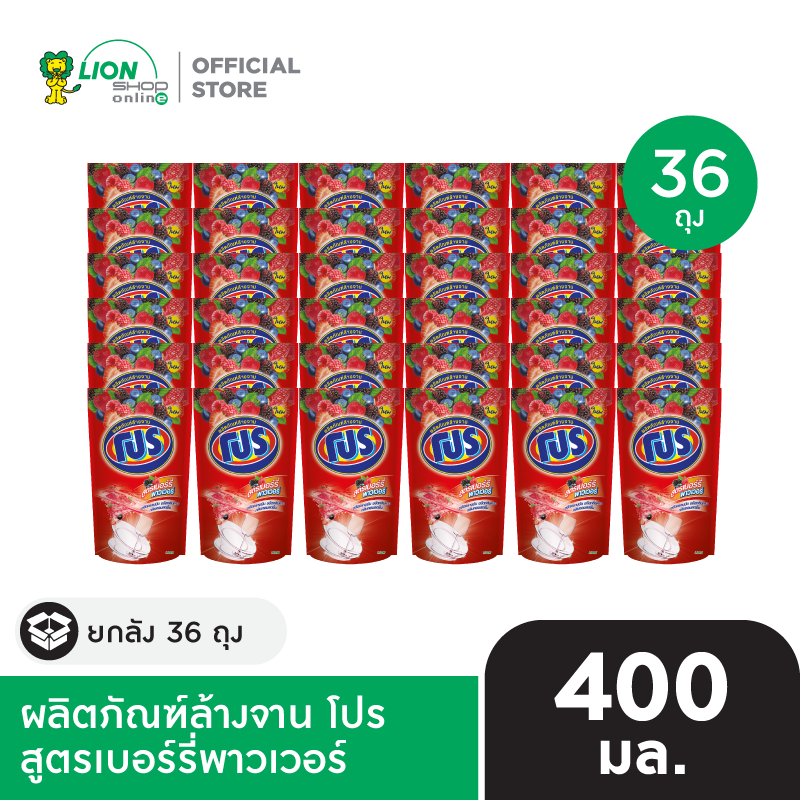[ยกลัง] ผลิตภัณฑ์ล้างจาน โปร 400 มล. ชนิดเติม 36 ชิ้น [เลือกสูตรด้านใน]