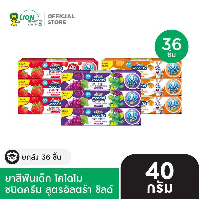 [ยกลัง] KODOMO ยาสีฟันเด็ก โคโดโม ชนิดครีม สูตรอัลตร้า ชิลด์ 40 กรัม 36 ชิ้น [เลือกสูตรด้านใน]