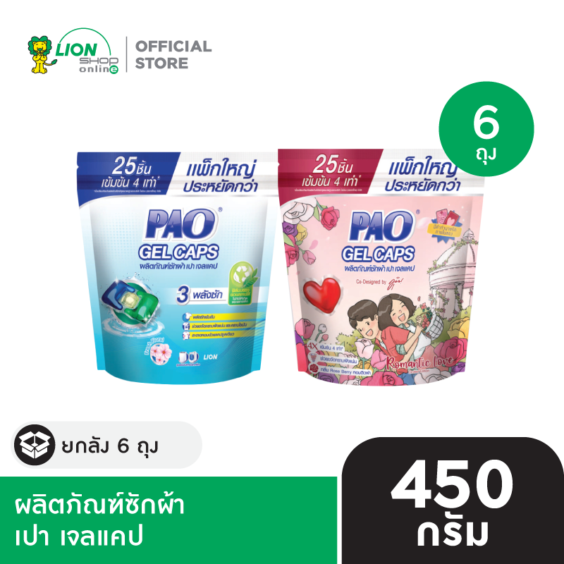 [ยกลัง] PAO Gel Caps ผลิตภัณฑ์ซักผ้า เปา เจลแคป สูตรเข้มข้น 450 กรัม ชนิดถุงเติม 25 ชิ้น [เลือกสูตรด้านใน]