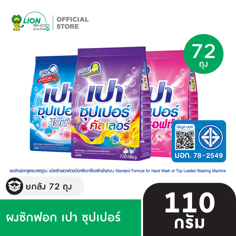 [ยกลัง] PAO SUPER ผงซักฟอก เปา 110 กรัม 72 ถุง [เลือกสูตรด้านใน]