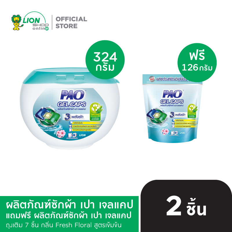 PAO GEL CAPS ผลิตภัณฑ์ ซักผ้า เปา เจลแคป 324 กรัม แถมฟรี PAO GEL CAPS ผลิตภัณฑ์ ซักผ้า เปา เจลแคป 126 กรัม ถุงเติม 7 ชิ้น [เลือกสูตรด้านใน]