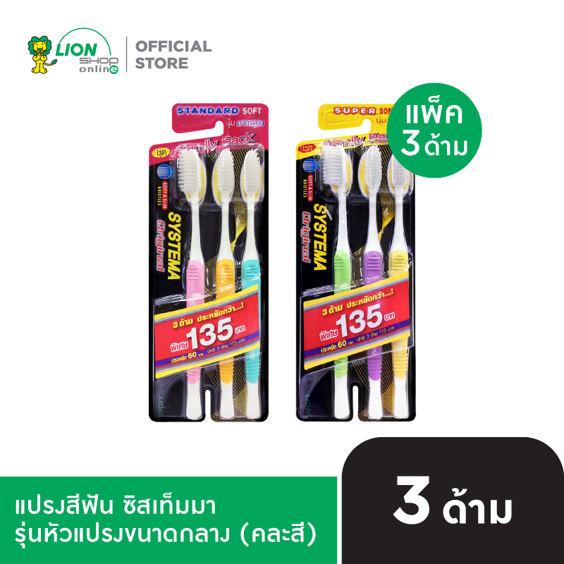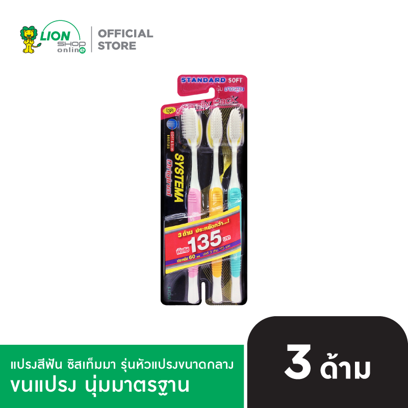 [แพ็ก 3] SYSTEMA แปรงสีฟัน ซิสเท็มมา รุ่นหัวแปรง ขนาด Original [เลือกขนแปรงด้านใน]