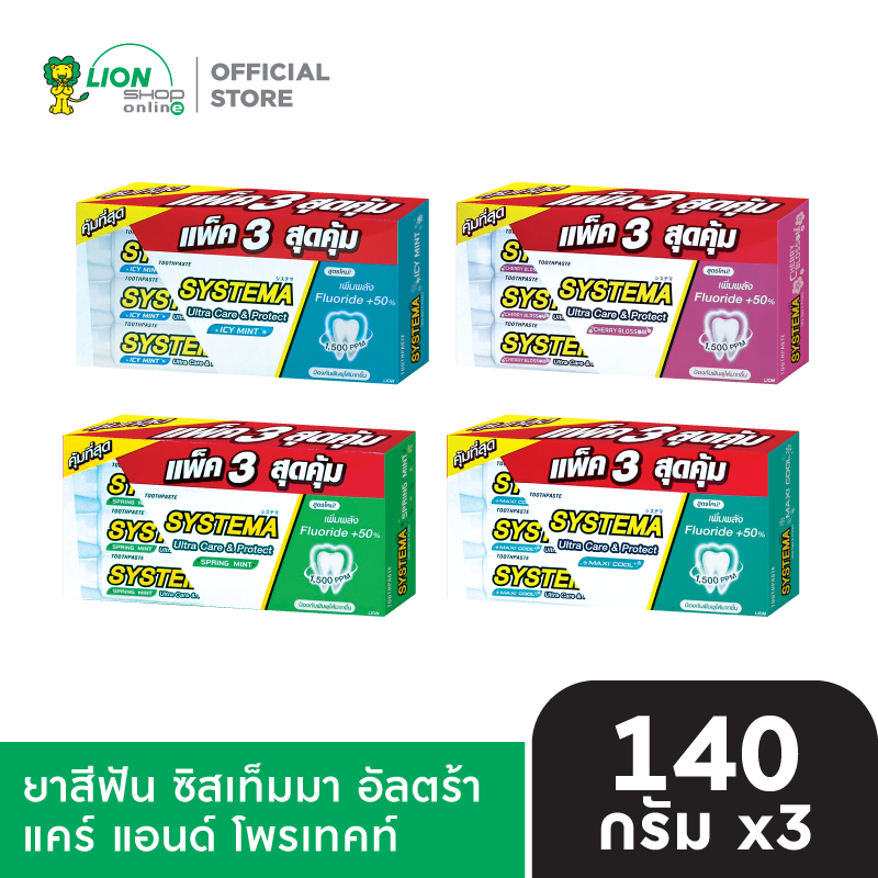 [แพ็ค 3] SYSTEMA ยาสีฟัน ซิสเท็มมา อัลตร้าแคร์ แอนด์ โพรเทคท์ 140 กรัม [เลือกสูตรด้านใน]