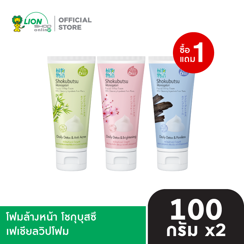 [1 ฟรี 1] SHOKUBUTSU โฟมล้างหน้า โชกุบุสซึ เฟเชียลวิปโฟม 100 กรัม [เลือกสูตรด้านใน] มี 3 ตัวเลือก เดลี่ดีท็อกซ์ แอนด์ ไบรท์เทนนิ่ง (ชมพู) เดลี่ดีท็อกซ์ แอนด์ แอนตี้แอคเน่ ใบไผ่ญี่ปุ่น (สีเขียว) เดลี่ดีท็อกซ์ แอนด์ พอร์เลส (สีฟ้า)...