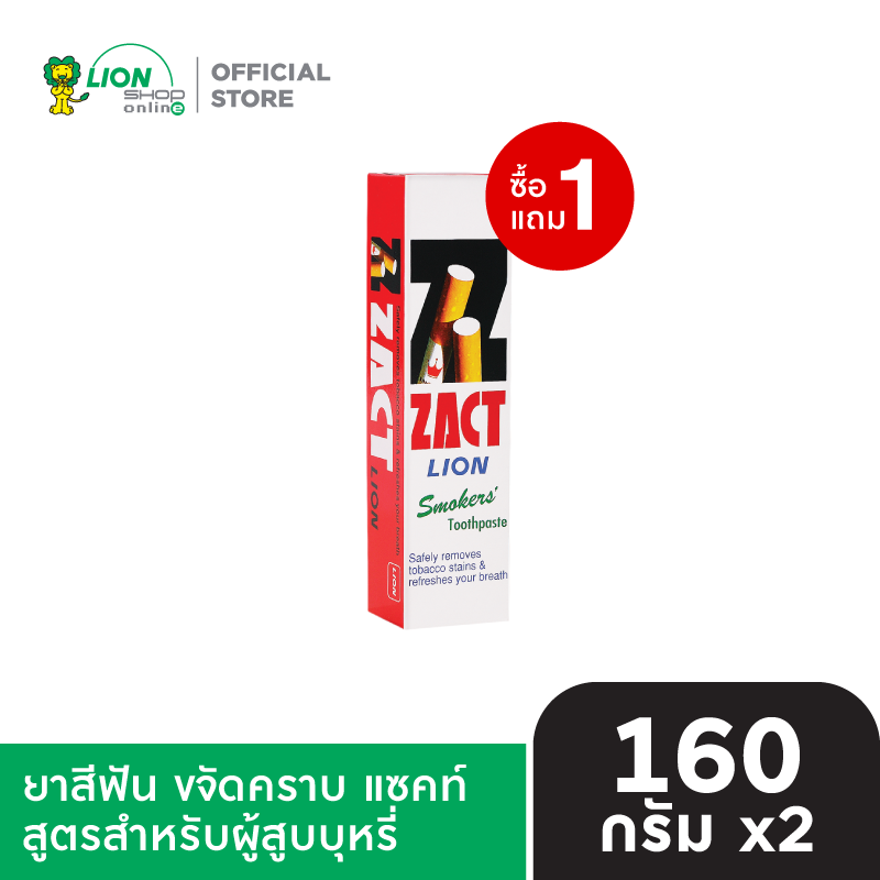 [1 ฟรี 1] ZACT ยาสีฟันขจัดคราบ แซคท์ 160 กรัม [เลือกสูตรด้านใน] 2 ตัวเลือก สูตรสำหรับผู้สูบบุหรี่ (กล่องสีแดง) สูตรสำหรับผู้ดื่มกาแฟ และชา (กล่องสีเขียว)